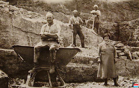 Schuler Kätt mit ihren Arbeitern im Steinbruch,Stadtbredimus (Photo collection: Joseph
