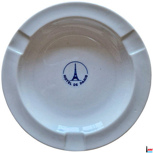 Cendrier publicitaire Hôtel de Paris fabriqué par Villeroy et Boch Diamètre 12 cm Années 1960 1970 (Collection Philippe Aschman) |