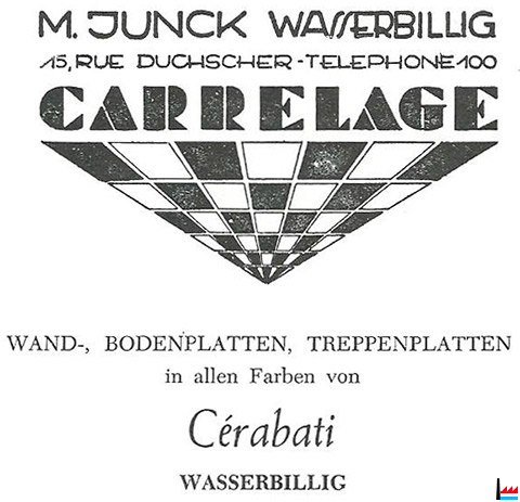 | 1940-44 | Umbenennung in "CERABATI - Allgemeine Gesellschaft für Baukeramik A.G, Wasserbillig" Ruf 4 A. Kill, Verwaltungsleiter |