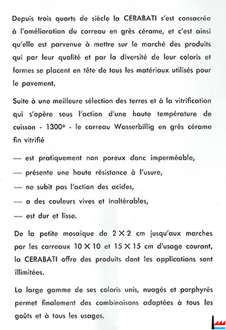 CERABATI - Wasserbillig - Carreaux de grès cérame fin vitrifié - Brochure 20 x 15 cm - Collection Charles-Louis Aschman