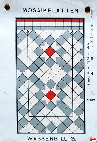 | 1912 | ![]() Mosaïkplatten - Verlegepläne von U.J. Wasserbillig - 1912 (Sammlung: Wilhelm Schommer) N° 171, - Porphyr N° 593 mit Einlagen N° 172 |