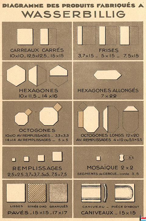 Logos utilisés au verso des carreaux fabriqués à Wasserbillig |