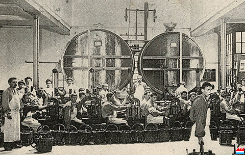 Etablissement E. Mercier & Cie - Succursale de Luxembourg: Hall de la mise en bouteilles -vers 1908 (Carte postale: Collection: industrie.lu)