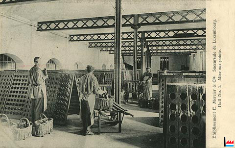 | <=1908 | Die Korbflechterei Kopstal und das Grundgefängnis stellen Champagnerkörbe für die Champagnerfabrik Mercier her. Die Firma Mercier beschäftigt Heimwerker zur Champagnerkörbeherstellung in verschiedenen Ortschaften, wie Cessingen, Merl, Bonneweg und Clausen. (BBZ : 22.9.1908) |
