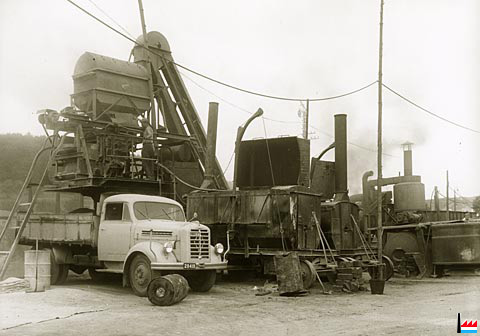 Teerherstellung aus Shell - Goudron, zur Vergrößerung des Flughafen Findel, hinter dem Bahnhof Oetringen (Photo: 28.7.1955 Pol Aschman; Copyright: