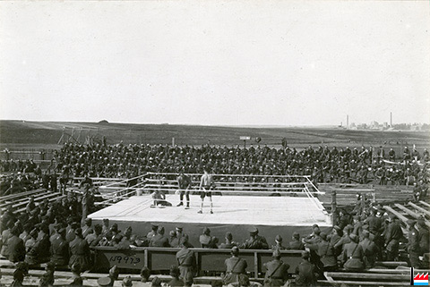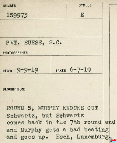 Esch/Alzette / Luxembourg: Boxing Round 5, Murphy knocks out Schwartz, but Schwartz comes back in the 7th round and Murphy gets a bad beating and goes up (Photo: 6-7-1919 PVT. Sues, S.C.; collection Serge Kugener)