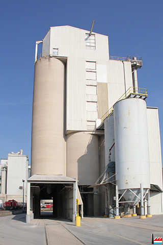 ![]() Ciments luxembourgeois S.A.: Déchargement des wagons type Tadkks transportant du clinker Portland, fabriqué à Rumelange par la filiale Intermoselle (Photo: 27.6.2000 jmo) ![]() Détail des silos (Photo: 27.6.2000 jmo) |