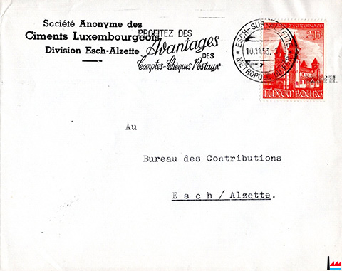 S.A. Ciments Luxembourgeois - Division Esch/Alzette - Poststempel vom 10.11.1953 (Collection: Marcel: Schlim)