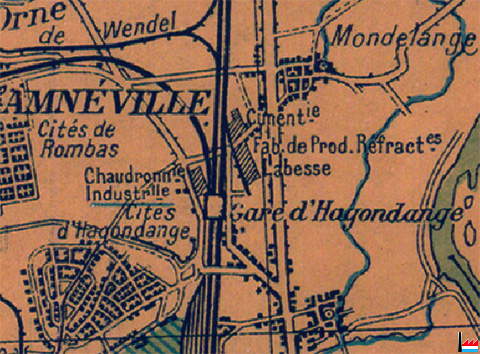 Chaudronnerie industrielle - Cimenterie (au nord de l'usine) - Fabrique de produits réfractaires Labesse (au nord de l'usine) - Gare de Hagondange (Carte Collection: industrie.lu)