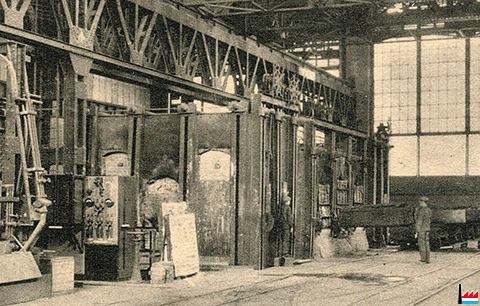 Cockerill, Seraing - Laminoir dégrossisseur, Blooming, actionné par une machine à vapeur de 1800 chevaux (Carte