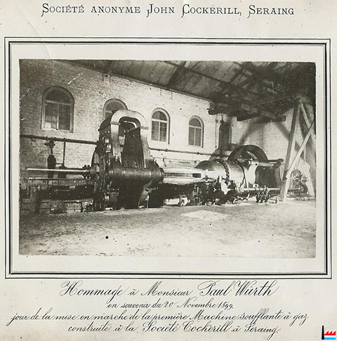 Hommage à Monsieur Paul Würth en souvenir du 20 Novembre 1899 jour de la mise en marche de la première Machine soufflante à gaz construite à la Société Cockerill à Seraing pour l'Usine de Differdange