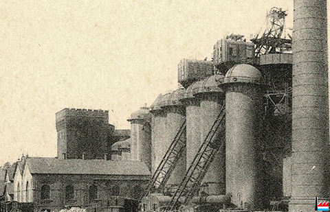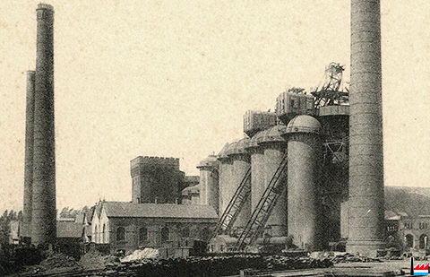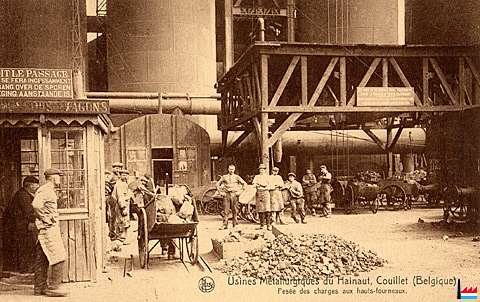 Couillet - Usines Métallurgiques du Hainaut - Pesée des charges aux hauts-fourneaux (Carte postale: Ern. Thill, Bruxelles; Collection: industrie.lu)