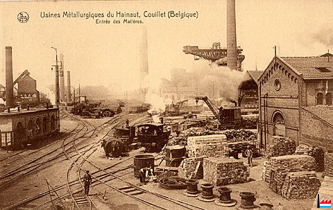 Couillet - Usines Métallurgiques du Hainaut - Entrée des matières (Carte postale: Ern. Thill, Bruxelles; Collection: industrie.lu)