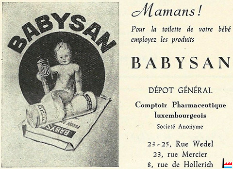 | 1973 | Capital : 12.500.000 francs (10.000 parts sociales) Conseil d’administration M. Pierre Feltes, directeur, Luxembourg Commissaires M. Jules Moitzheim, pharmacien, Luxembourg (Annuaire des sociétés anonymes du Grand-Duché de Luxembourg, XIIe édition, 1973, publié par la Banque internationale à Luxembourg S.A.) |