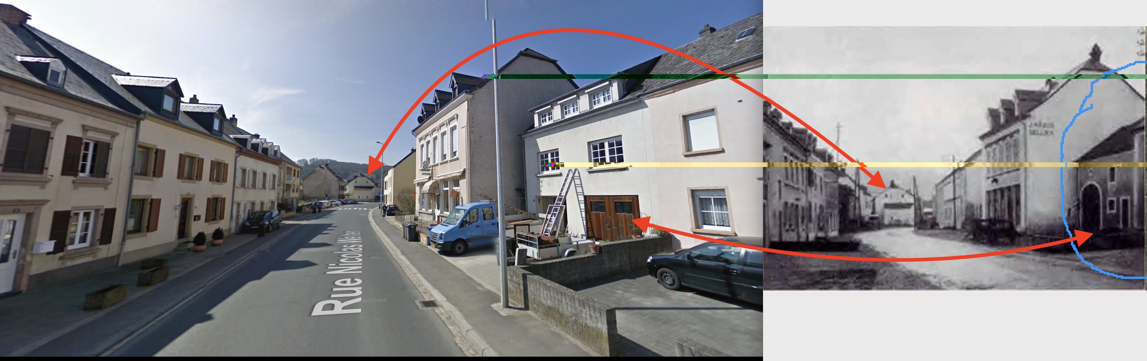 Hei ass déi selwecht Plaz vun där anerer Säit op enger anerer Kart déi 1909 gestempelt gouf: Kinnt hei net och de Göpel stoen, oder wat ass dat?