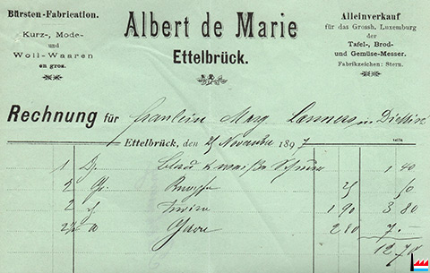 Albert de Marie, Bürsten-Fabrication - Rechnung von 1897 (Collection: industrie.lu)