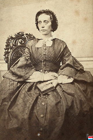 ![]() Petronilla (ou Petronella) Joséphine Élisabeth Kieken (* 25.2.1820 aux Pays-Bas ; † 26.8.1873 à Amsterdam) épousa le 2.6.1842 à Luxembourg Joseph de Muyser (Demuÿser) (* 30.11.1816 à Grevenmacher ; † 15.8.1865 à Amsterdam) - (Jac. Pilartz, Photograph, Amsterdam, Stilsteeg G 94 – Archives privées Guy de Muyser, Luxembourg) |