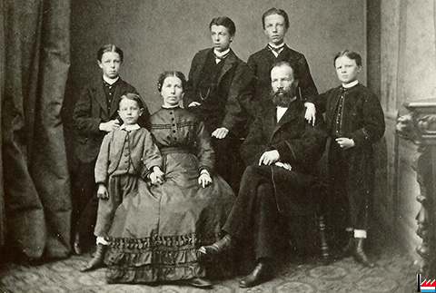 | vers 1870 | ![]() Joséphine de Muyser (* 19.4.1823 à Luxembourg) et Jean Grafé (* 9.7.1822 à Luxembourg), professeur de rhétorique latine à l’Athénée royal de Namur, et leurs enfants Léon (* 29.10.1852 à Namur), Alfred (* 19.5.1855 à Namur), Joseph (* 6.7.1857 à Namur), Henri (* vers 1860) et Charles (* 30.6.1863 à Jambes), à Namur vers 1870. - Archives privées Guy de Muyser, Luxembourg |