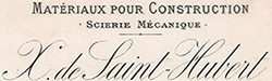 | 1910 | X. de Saint-Hubert, Luxembourg Exploitation forestière Exploitant : X. de Saint-Hubert, Luxembourg (Inscription au registre aux firmes N° 6 - Du 5 janvier 1910) |