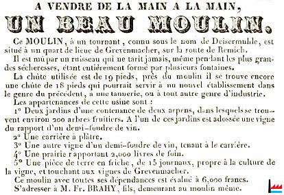 | 1839 | Deisermühle à vendre par Fr. Brahy, Grevenmacher |