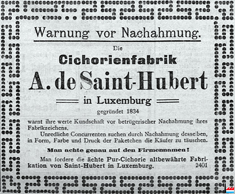 | 1911 | ![]() Cichorienfabrik A. de Saint-Hubert, Luxemburg - Warnung vor Nachahmung (LW: 19.4.1911) |