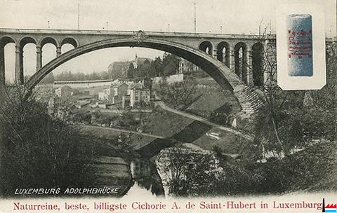 Naturreine, beste, billigste Cichorie A. de Saint-Hubert, Luxemburg - Adolphbrücke - Carte postale publicitaire (Collection Ph. Aschman)