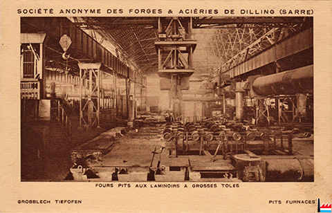 Dillinger Hütte - Société anonyme des forges et aciéries de Dilling (Sarre) - Fours pits aux laminoirs à grosses tôles - Grobblech Tiefofen - Pits furnaces (Carte postale: Collection: industrie.lu)