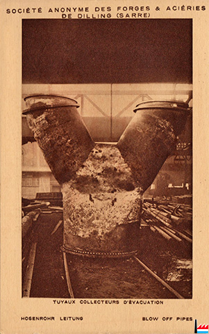 Dillinger Hütte - Société anonyme des forges et aciéries de Dilling (Sarre) - Tuyaux collecteurs d'évacuation - Hosenrohr-Leitung - Blow off pipes (Carte postale: Collection: industrie.lu)