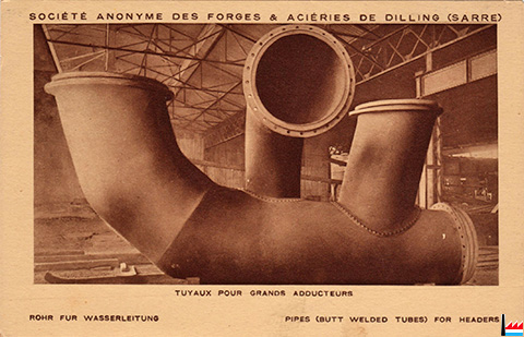 Dillinger Hütte - Société anonyme des forges et aciéries de Dilling (Sarre) - Conduites forgées - Leitung - Pipes (Carte postale: Collection: industrie.lu)