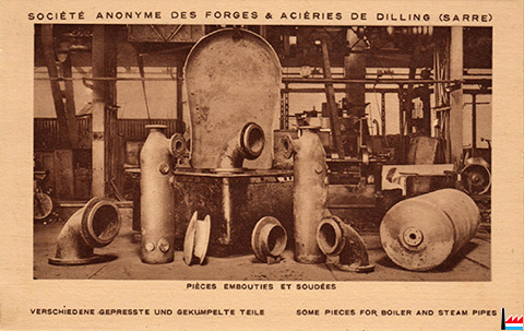 Dillinger Hütte - Société anonyme des forges et aciéries de Dilling (Sarre) - Pièces embouties et soudées - Verschiedene gepresste und gekumpelte Teile - Some pieces for boiler and steam pipes (Carte postale: Collection: industrie.lu)