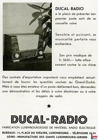Publicité Ducal-Radio de 9.1947 (Collection: industrie.lu)