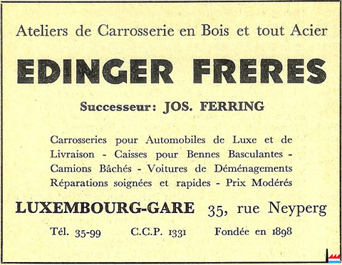 | 1947/48 | Carrosserie Edinger frères Cie 35 rue Neyperg |