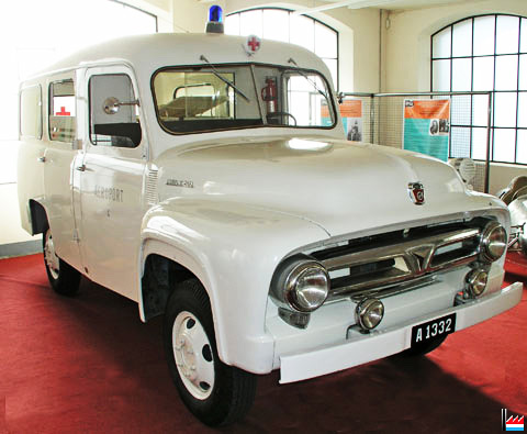 FORD F250 Flughafen - Krankenwagen - Ambulance de l'Aéroport; Karosserie der Firma Jos Ferring (früher Edinger); Design de la carrosserie: Adrien Faber Ausgestellt im Conservatoire National de véhicules historiques, Diekirch (Photo: 7.12.2007 jmo) |