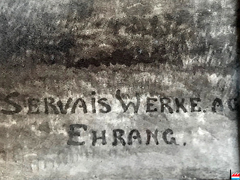Das Datum der Herstellung könnte man nur ungefähr eingrenzen, wenn das Bild in Katalogen oder in Veröffentlichungen der Weltausstellungen der damaligen Zeit gezeigt wäre; das ist mir aber nicht bekannt. Auf Grund des Schriftzuges auf dem Bild ist es zur Zeit der Servais Werke AG entstanden, also ab 23.07.1902.