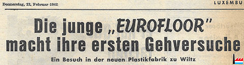 | Eurofloor S.A. (Wiltz) commence la production de revêtements de sols à base de chlorure de polyvinyle (PVC) en 1963. | |||