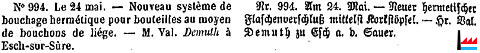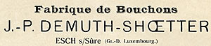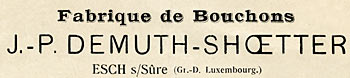 | 1935 | ![]() Fabrique de bouchons J.P. Demuth - Schoetter, Esch/Sûre |