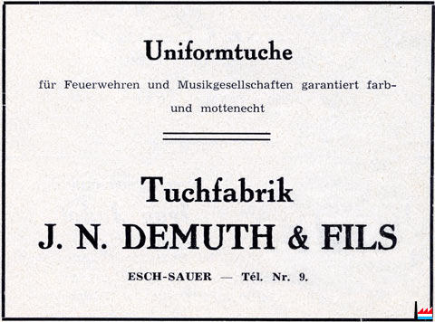 Tuuchfabrik J.N. Demuth & Fils, Esch-Sauer - Tél. 9