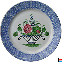 Assiette polychrome , porcelaine opaque, à décor à l'éponge,