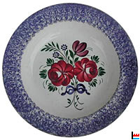 Décor du bord réalisé à l'éponge (en dents de scie, et bouquet de roses et myosotis avec noeud au centre J. LAMORT, ECHTERNACH |