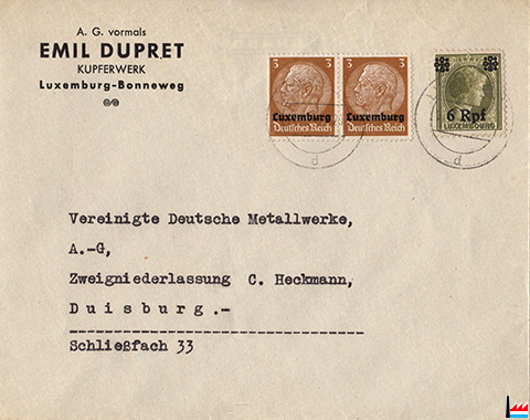 A.G. vormals Emil Dupret - Briefumschlag während der deutschen Besatzungszeit im 2. Weltkrieg (Collection: industrie.lu)