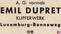 <=1910: Création de la succursale Emile Dupret à Longwy 1914/18: Destruction de la succursale Emile Dupret à Longwy >1918: Réouverture de la succursale Emile Dupret à Cons-la-Grandville 1940/45: Confiscation des machines modernes par les Allemands |