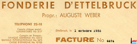 Fonderie d'Ettelbruck - Auguste Weber - Facture du 1.10.1955 (Collection: industrie.lu)