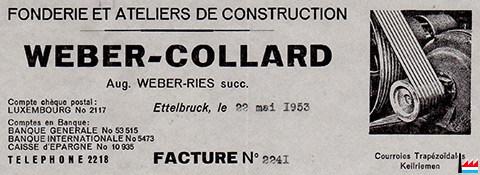 Fonderie et Ateliers de construction M. Weber - Collard, Aug. Weber - Ries succ., Ettelbruck - Facture du 22.5.1953 (Collection: industrie.lu)