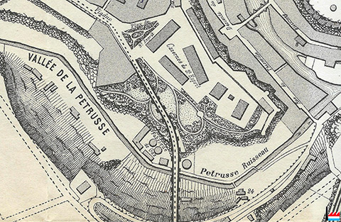 Fabrique de gaz, Pétrusse, Luxembourg - Plan de la Ville de Luxembourg en 1878 (Collection Philippe Aschman, Luxembourg)