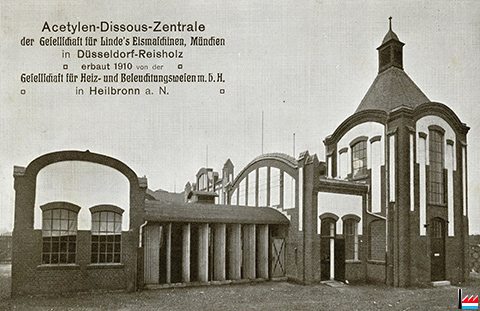 Acetylen-Dissous-Zentrale der Gesellschaft für Linde's Eismaschinen, München - in Düsseldorf-Reisholz, erbaut 1910 von der Gesellschaft für Heiz- und Beleuchtungswesen m.b.H. in Heilbronn (Collection: industrie.lu)