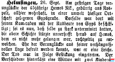 Unfall Gipsgrube in Helmsingen: Hemes Nikolas, aus Nospelt -