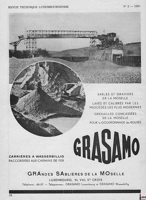 | 1947 | Grasamo - Grandes Sablières de la Moselle, Wasserbillig Bureaux: 14 rue de Strasbourg, Luxembourg |