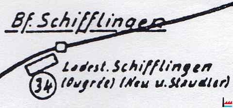 Lënks dVerlängerungsgleis vum Schëfflenger Minettsquai, hanen de Prellbock (mat Stangepuffer, spéider op Museumswon). Dëst Gleis ass ca 1984/85 erausgerappt ginn.
