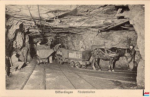 Differdingen - Förderstollen (Carte postale: Verlag Ch. Grieser, Hofphotograph, Luxemburg, 1916; collection: industrie.lu)