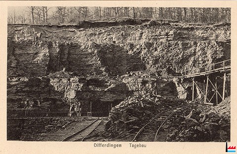 Differdingen - Tagebau (Carte postale: Verlag Ch. Grieser, Hofphotograph, Luxemburg, 1916; collection: industrie.lu)
